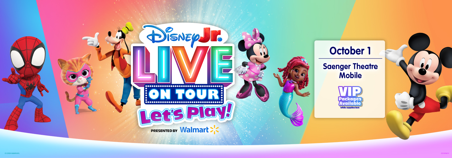 “Disney Jr. Live On Tour: Let’s Play” presented by Walmart marks the latest version of the Disney Jr. live tour, which will visit Mobile on October 1st at the Saenger Theatre. New to the tour this year is the addition of Ariel from the highly anticipated new series “Disney Jr.’s Ariel,” who will make her debut alongside Mickey, Minnie, Goofy and characters from other fan-favorite Disney Jr. series, including “Marvel’s Spidey and his Amazing Friends” and “SuperKitties.” The tour will also feature the iconic Clubhouse from “Mickey Mouse Clubhouse.”