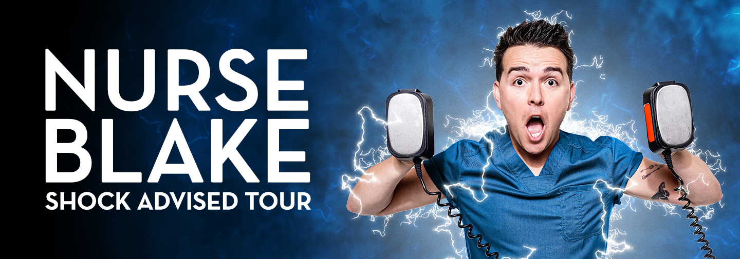 In 2023, Nurse Blake decided to embark on a new 100 city tour, Shock Advised Comedy Tour, across North America featuring live skits, videos, and interactive stories drawn from his real-life. This tour follows his 2022 PTO Comedy Tour which started in 14 cities and grew to 55 due to demand -and sold out every venue!