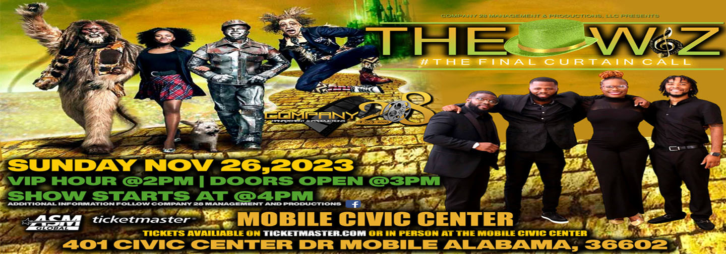 Tickets can be purchased online at https://bit.ly/wiz23. Purchase in person at the Mobile Civic Center Box Office (401 Civic Center Drive; open Monday – Friday, 9 a.m. to 5 p.m.; 251-208-7906) or the Saenger Theatre Box Office (6 South Joachim Street; open Monday – Friday, 10 a.m. to 2 p.m.; 251-208-5600). For information regarding accessible seating tickets, call 251-208-7381. (Additional fees, service charges and/or taxes may be added to ticket prices. All dates, acts and ticket prices subject to change without notice.)