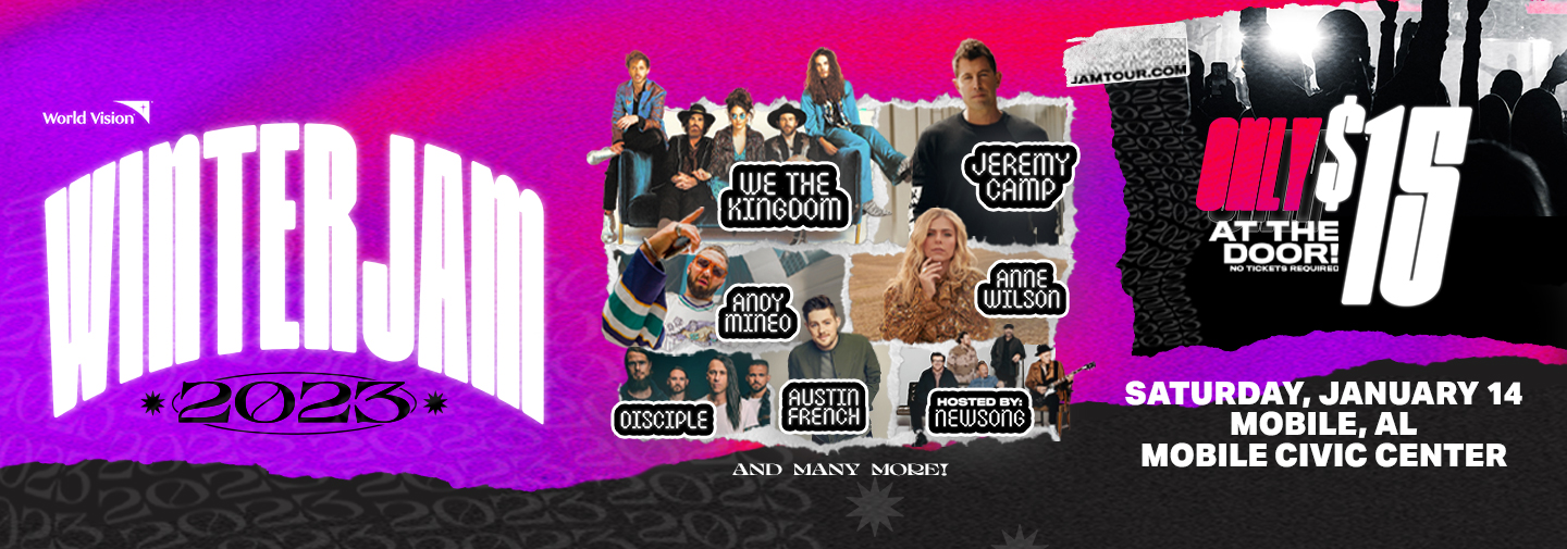World Vision presents Winter Jam Tour, hosted by Newsong & produced by Premier Productions, Christian music’s biggest tour, is back for 2023 with headliners We the Kingdom and Jeremy Camp and a solid lineup of acts including Andy Mineo, Disciple, Austin French, NewSong and featuring for the first time Dove Award-winning new artist of the year Anne Wilson.